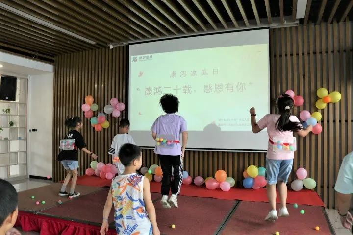 康鸿集团领导与员工家属欢聚一堂,共同观看公司宣传片和照片,一起回顾了康鸿20年的发展历程。通过各种亲子游戏、节目表演、亲子乒乓球及篮球等活动,让员工家人沉浸在欢乐的海洋中。