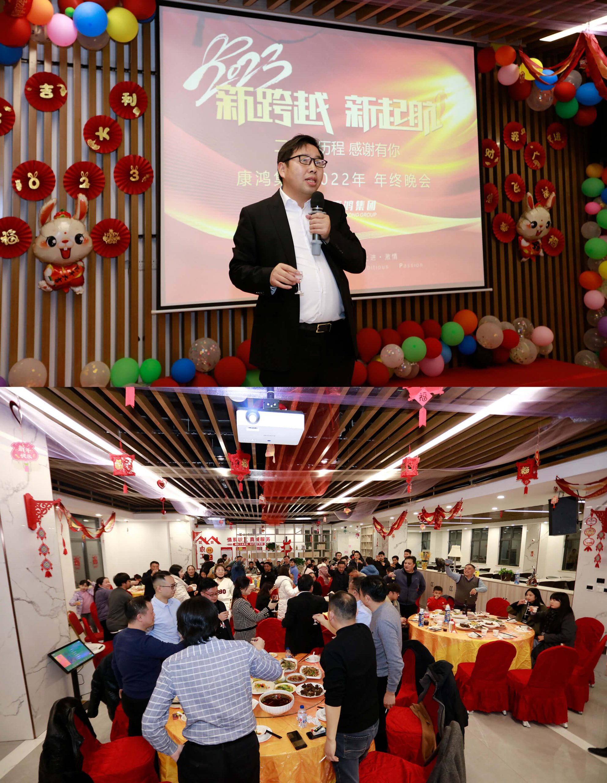 2023年1月10日,康鸿集团及旗下所有子公司于康鸿智能生态园召开2022年终总结大会,总结经验,辞别2022,再战2023。