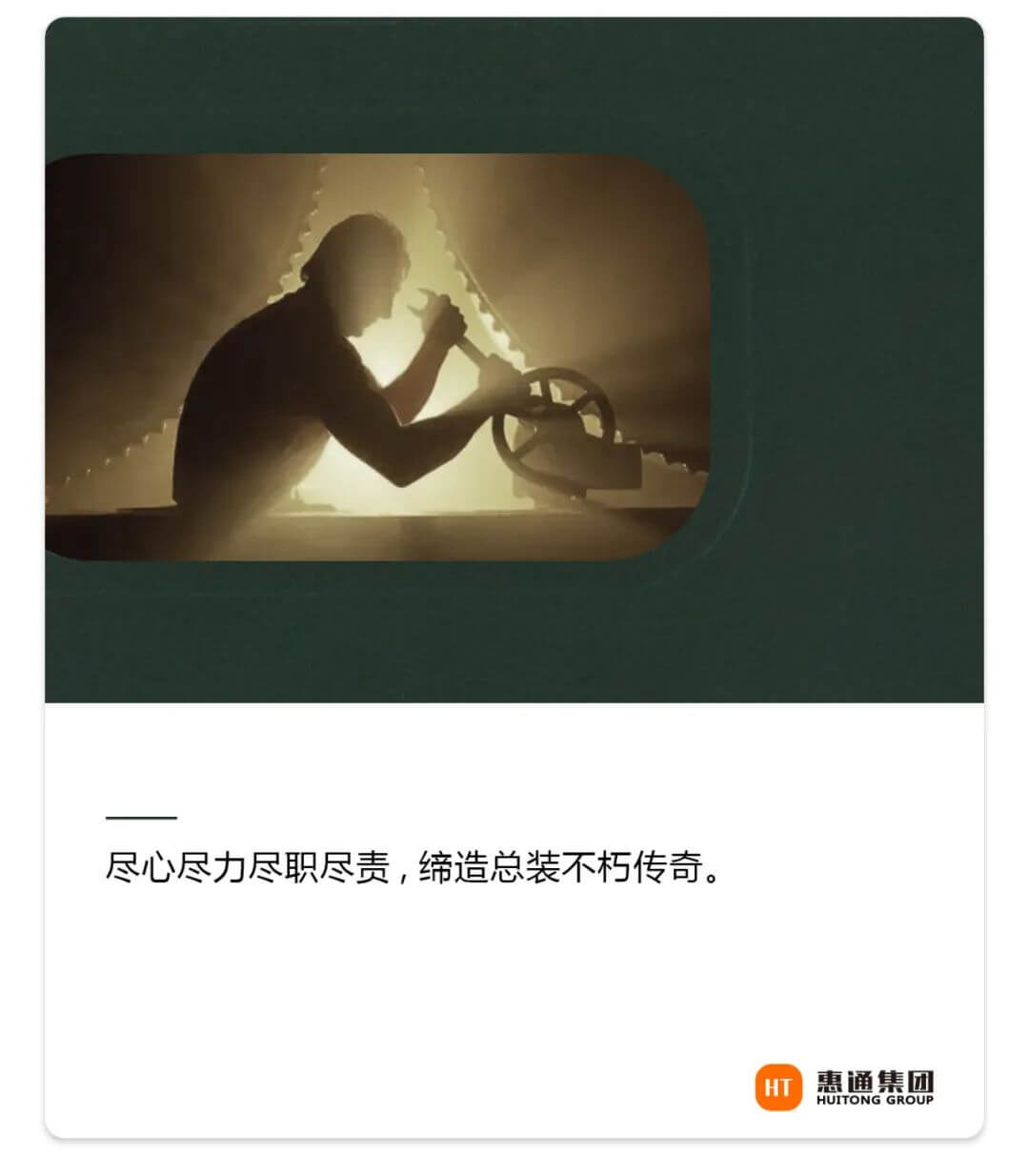 十九年来,惠通集团以感恩做人,敬业做事理念为指引一往无前,从一家普通的民营小厂,发展为集新一代智能制造、机器人和新型材料完整产业链为主导的高科技产业集团。卓越成就的背后,是团队力量,是每位普通员工的忘我付出。他们是产业奋斗者、时代推动者,是最可敬的人。